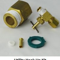 Water Line Hookup for your AquaNui is accomplished in one of three ways. A Saddle Tapping Valve is included with each AquaNui 8G, 10G and 12G. To install with no piercing of the pipe, or if restricted from use by local code, choose either an Angle Stop Valve, for under-sink hookup, or a Utility Hookup Kit (shown), for use on the washing machine line.
